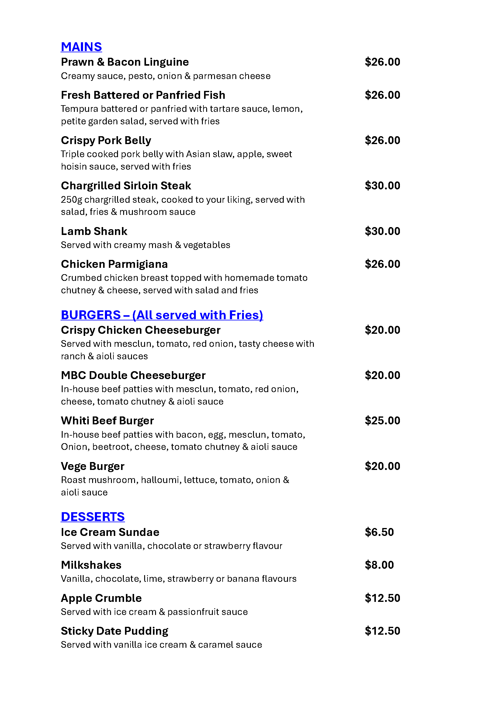 Our restaurant offers a variety of food along with bar snacks and a children’s menu.