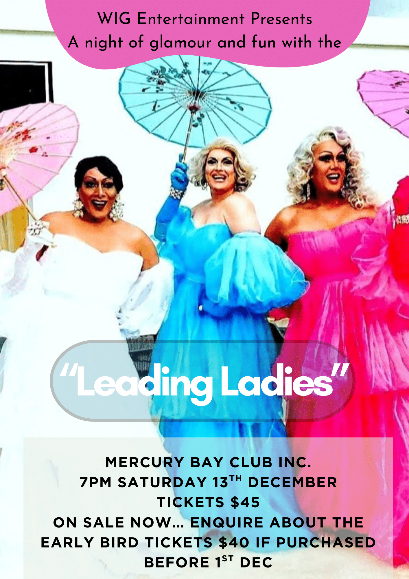 WIG Entertainment & The Mercury Bay CLub Present A night of glamour and fun with the “Leading Ladies”